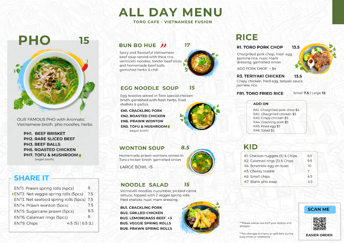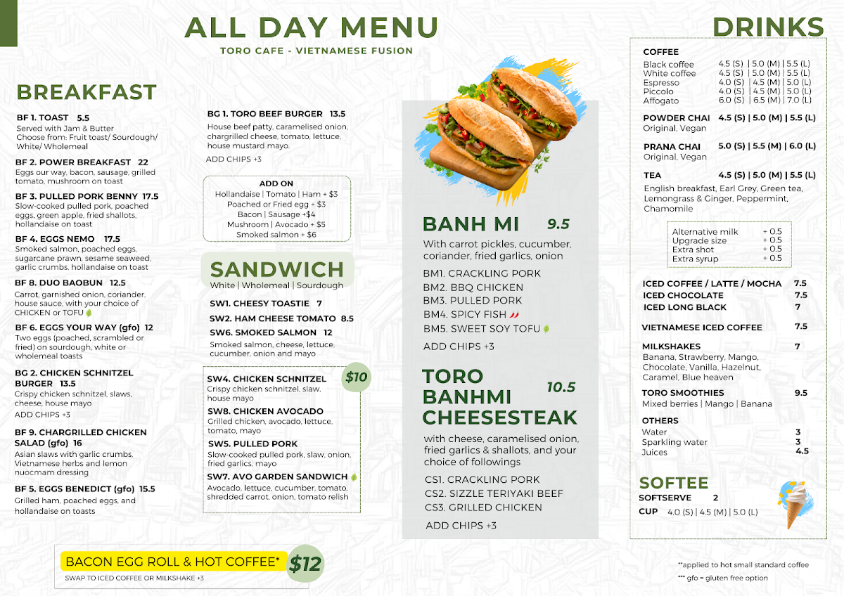 Toro Cafe Vietnamese Food Menu